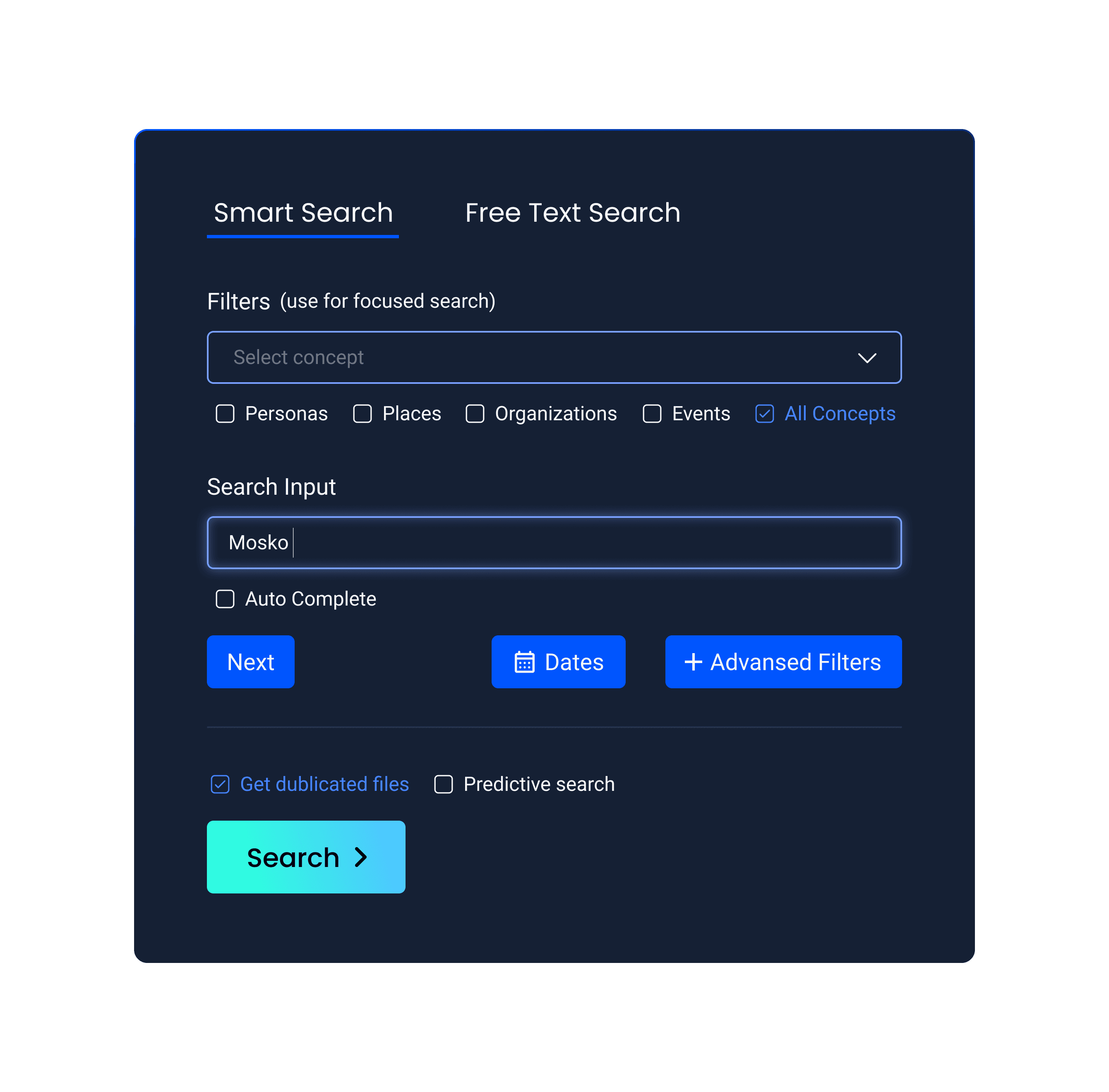 IntuView’s Search & Analysis module lets users explore unstructured, multilingual data through smart search, predictive filters, and visual tools—revealing hidden patterns, relationships, and insights across complex datasets.