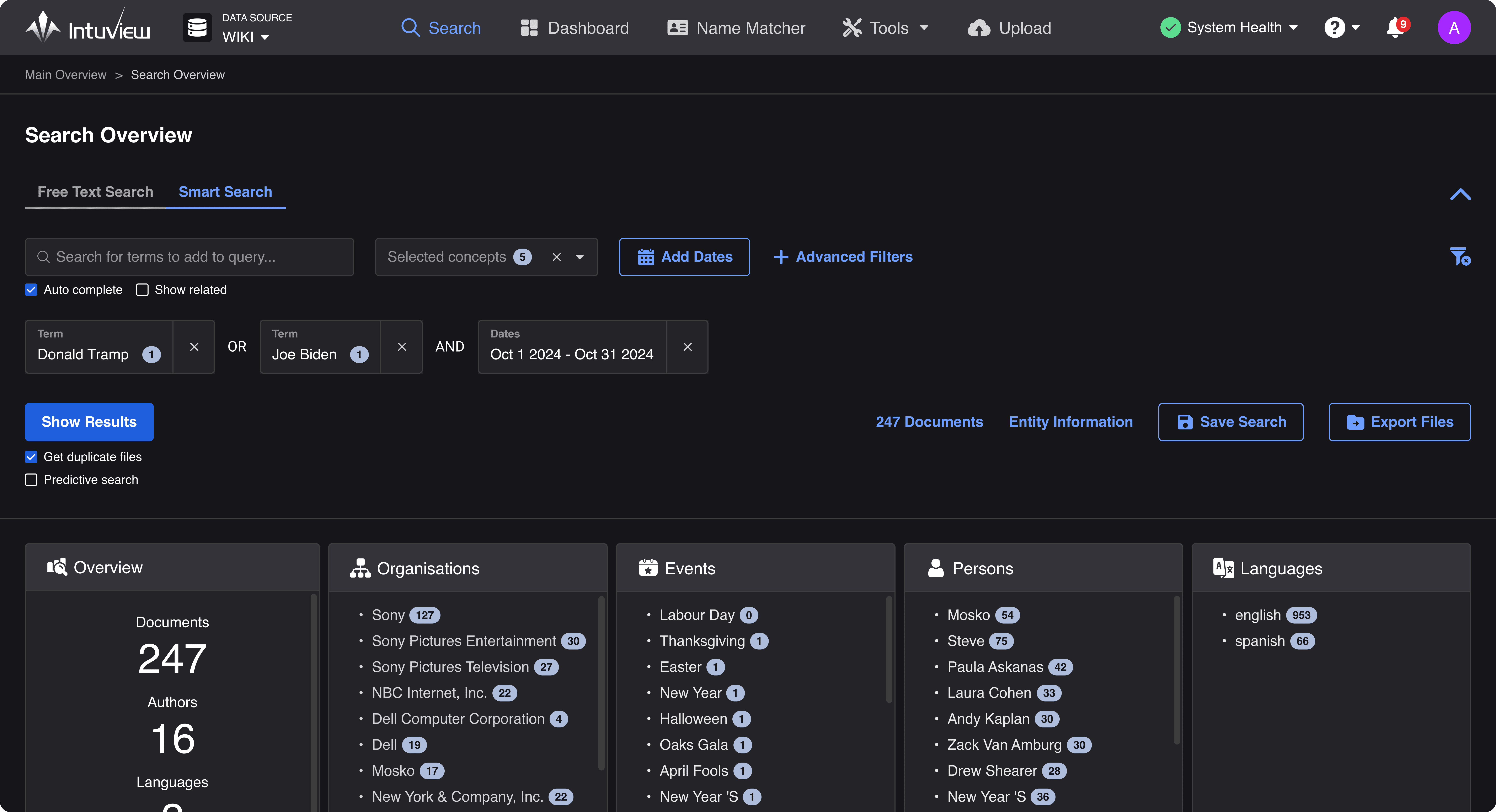 IntuView combines powerful, flexible search tools with rich visual analytics—letting you find what matters even in noisy, multilingual data.